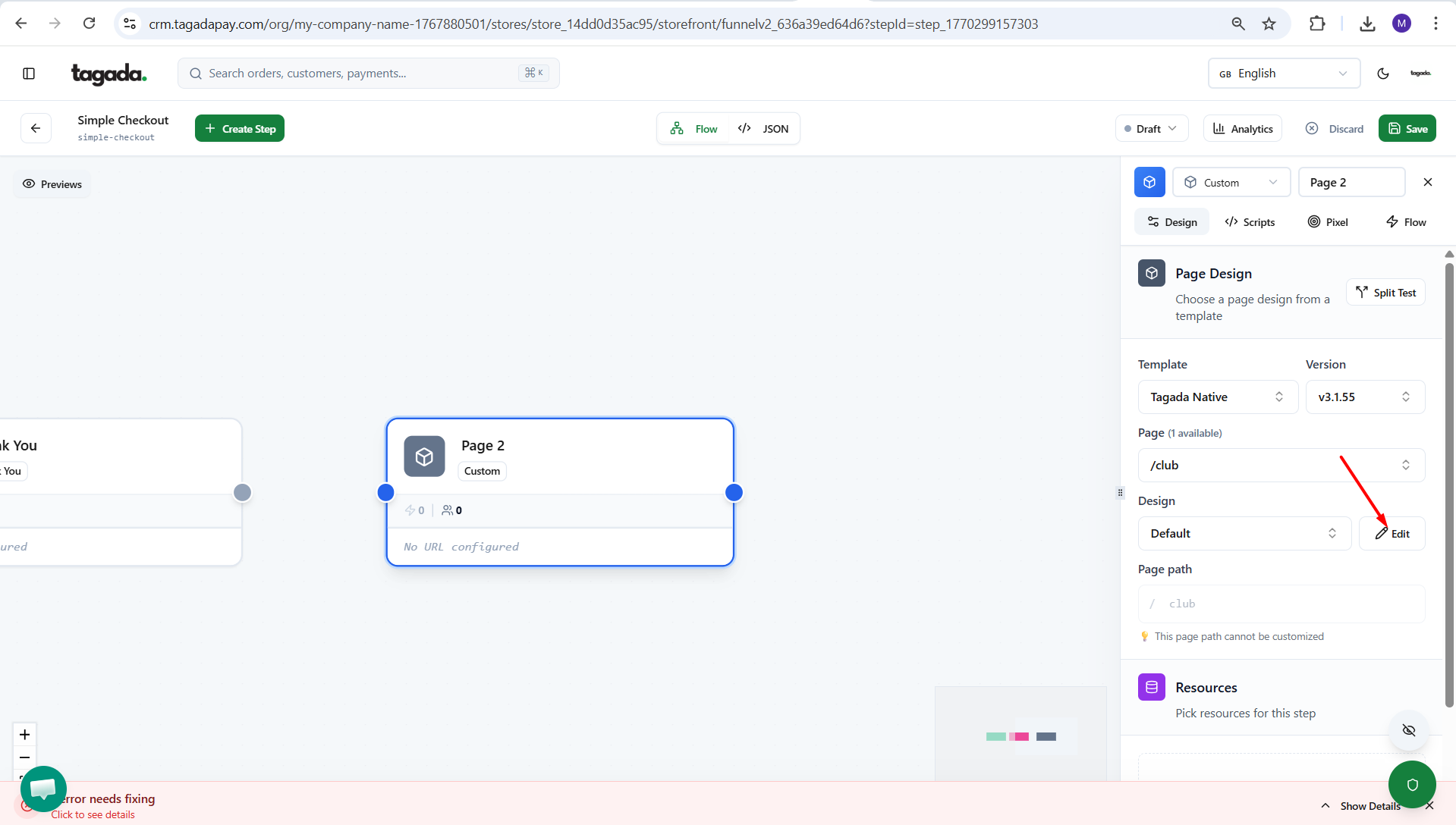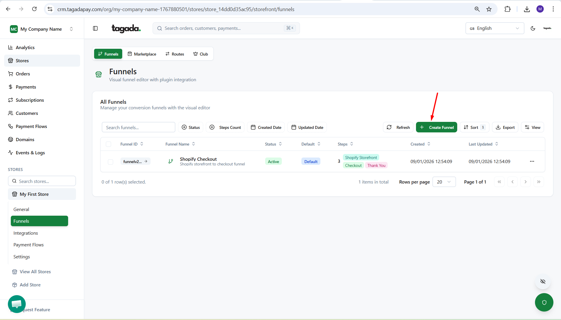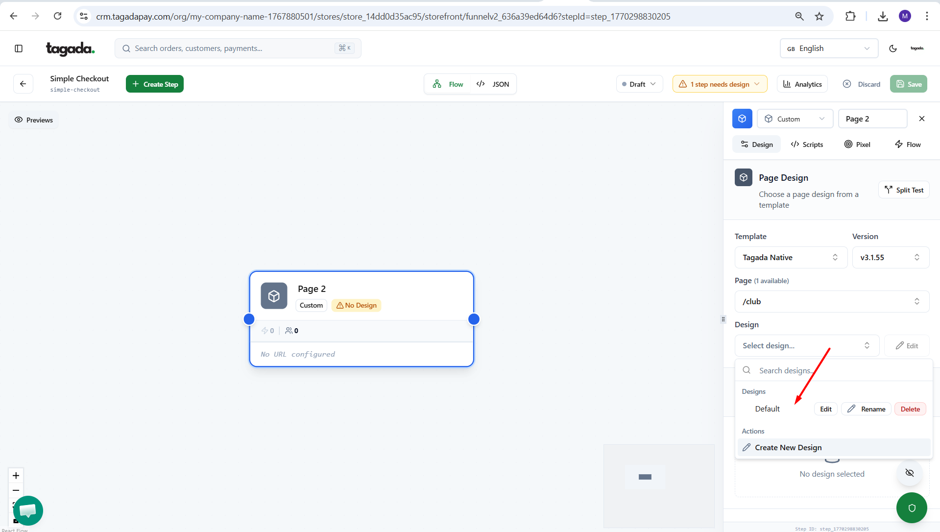 A new funnel with only one custom page → select Tagada Native, it will automatically configure the club