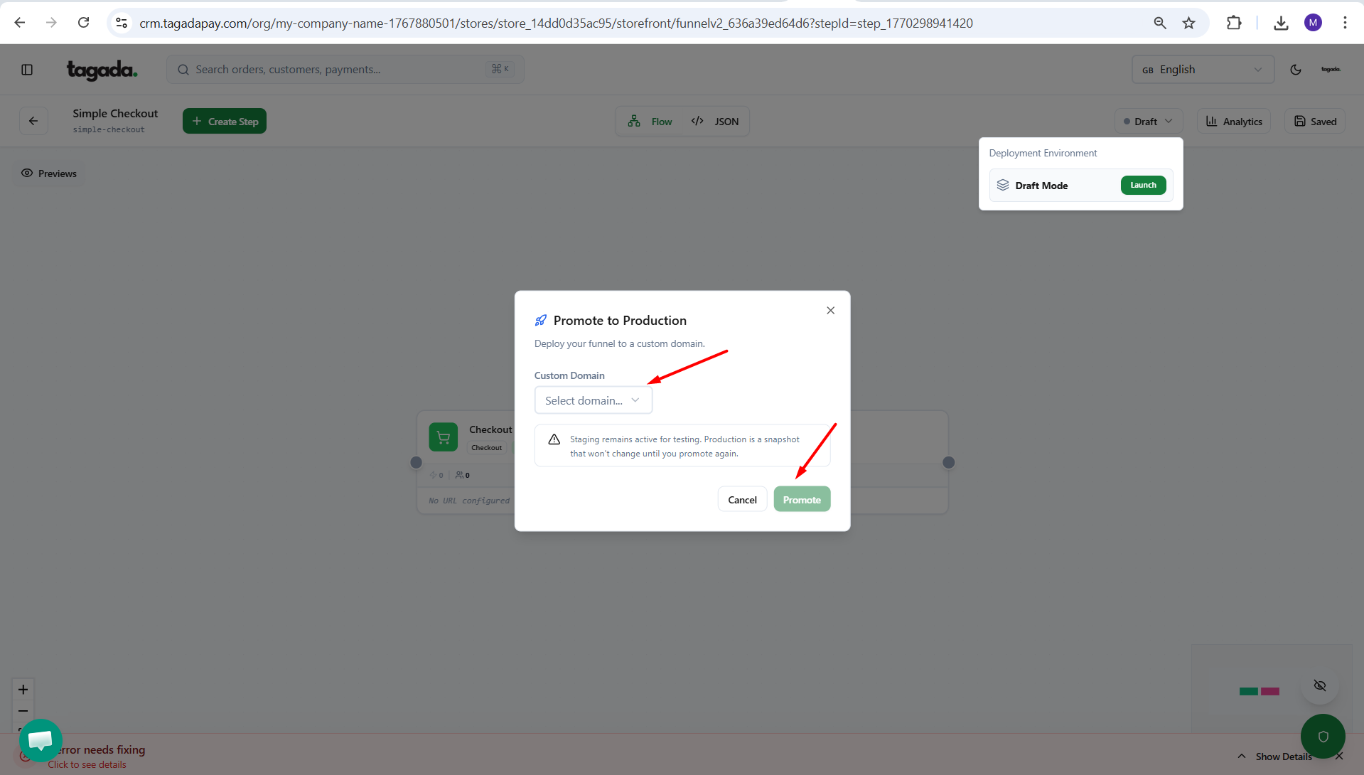 Chose your custom domain for example club.mydomain.com and click on promote.