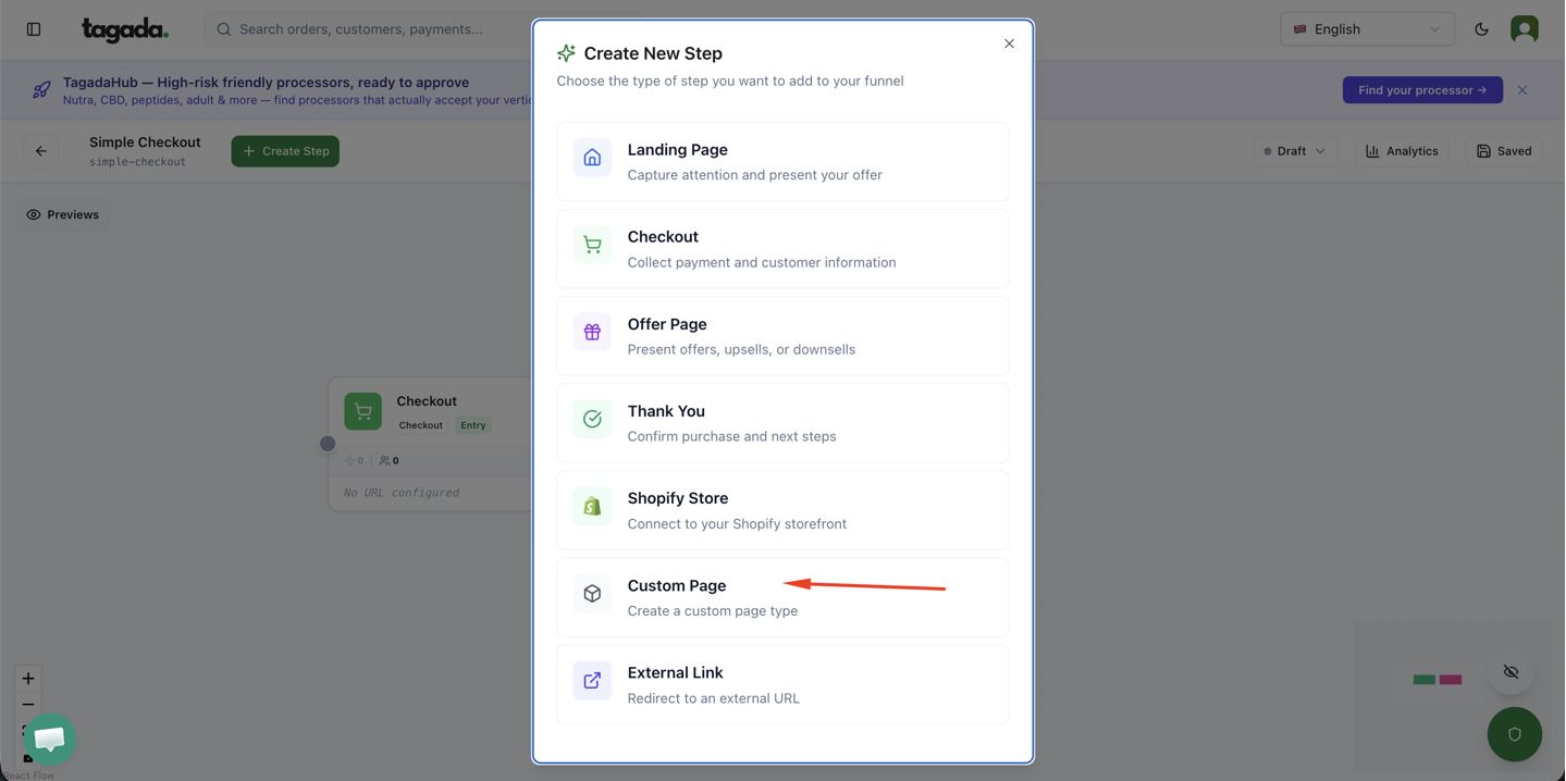 Click on Custom Page.