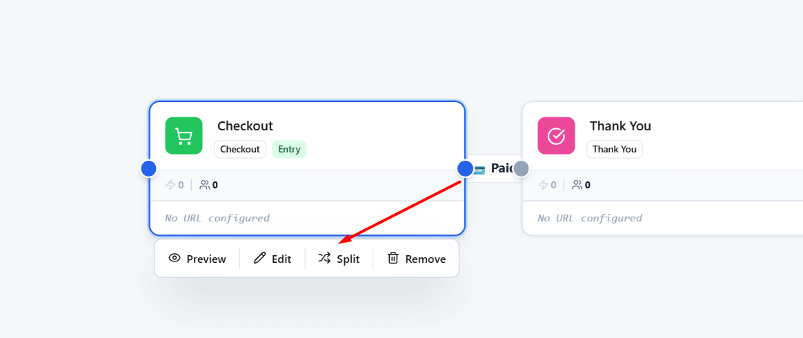 Hover over the checkout box to display the pop-up buttons below. Click on Split button.