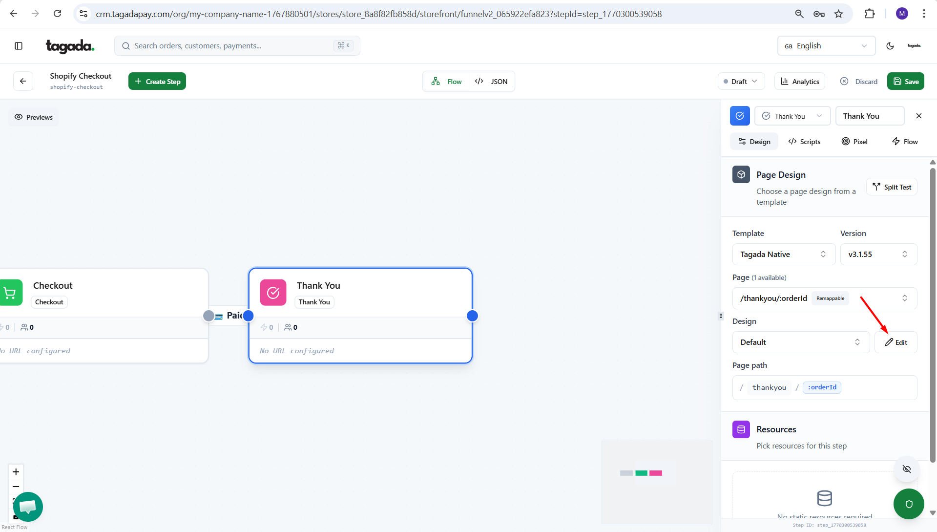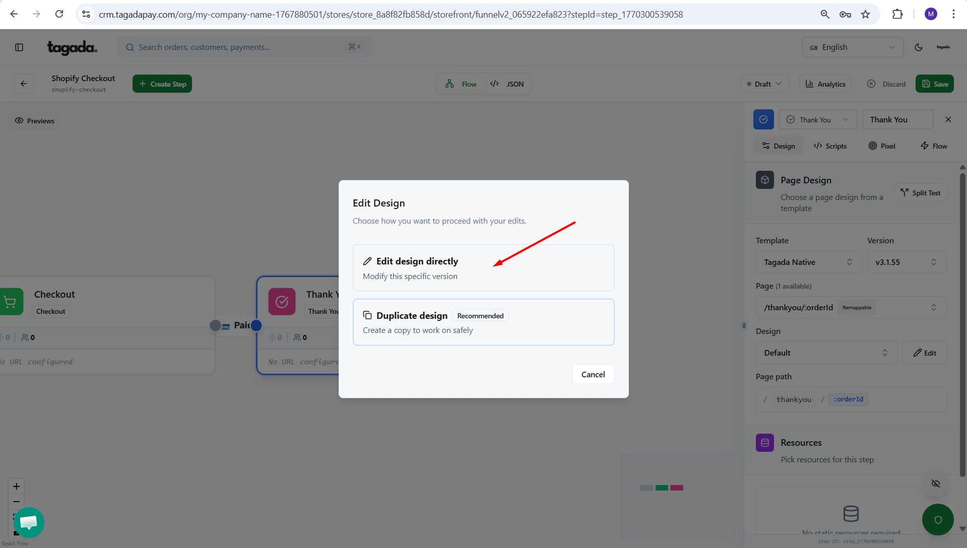 You can either chose to Edit design directly or to Duplicate the design and then edit (interesting if you want to duplicate your thank you page for split tests).