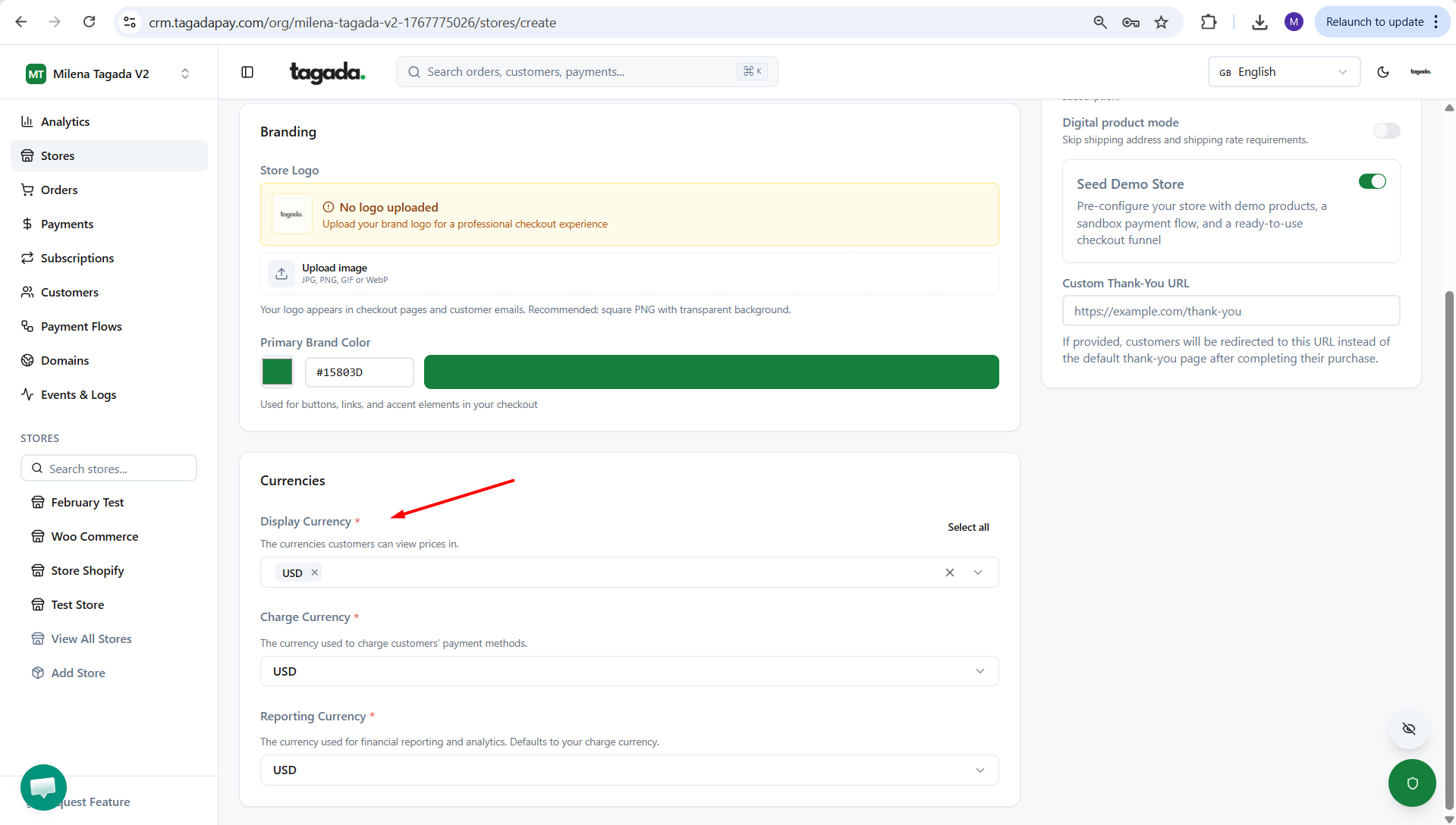 Charge Currency - The primary currency of your store. All currency conversions are calculated from this currency.
