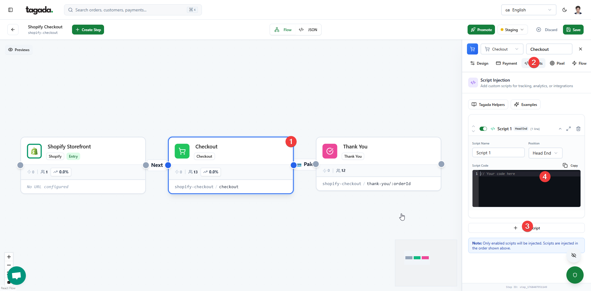 If you would like to add your pixel directly on your checkout by using the script, please follow these steps.