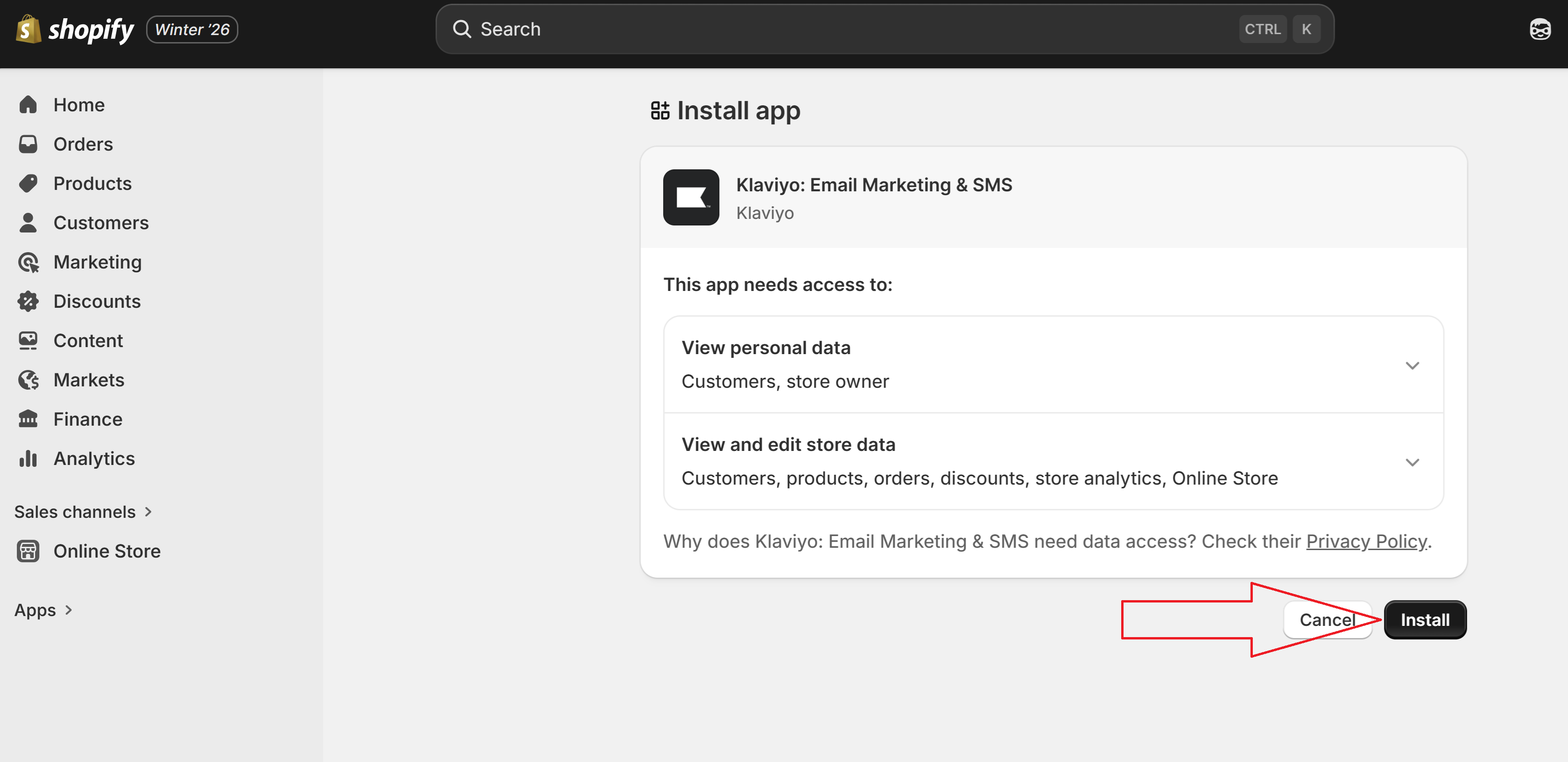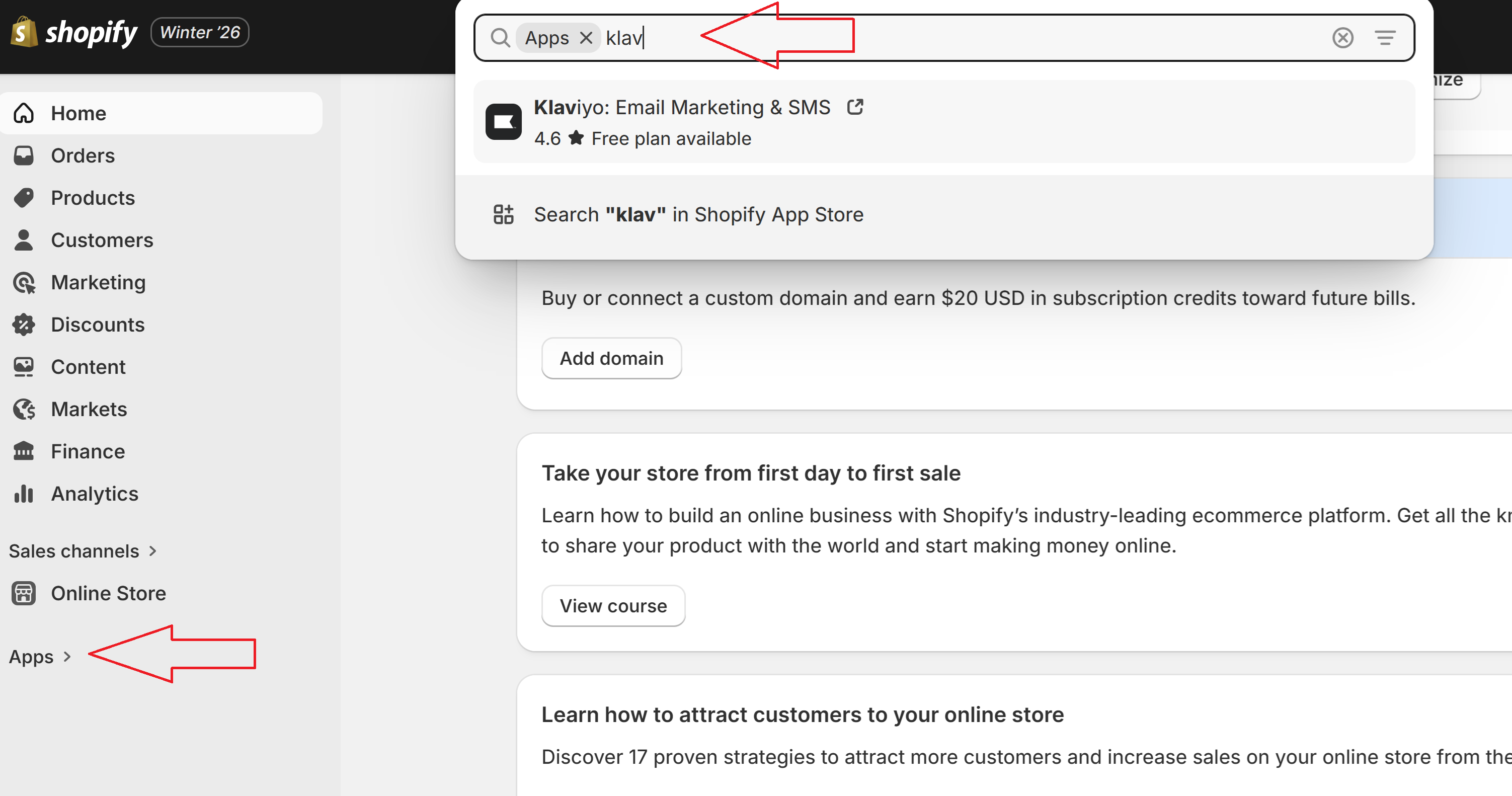 IMPORTANT - If it’s your first time setting up Klaviyo, you will have to open an account with them and then to set up all the individual email and sms sequences that you want to use i.e. - abandonded checkout email sequence, sms blast etc.