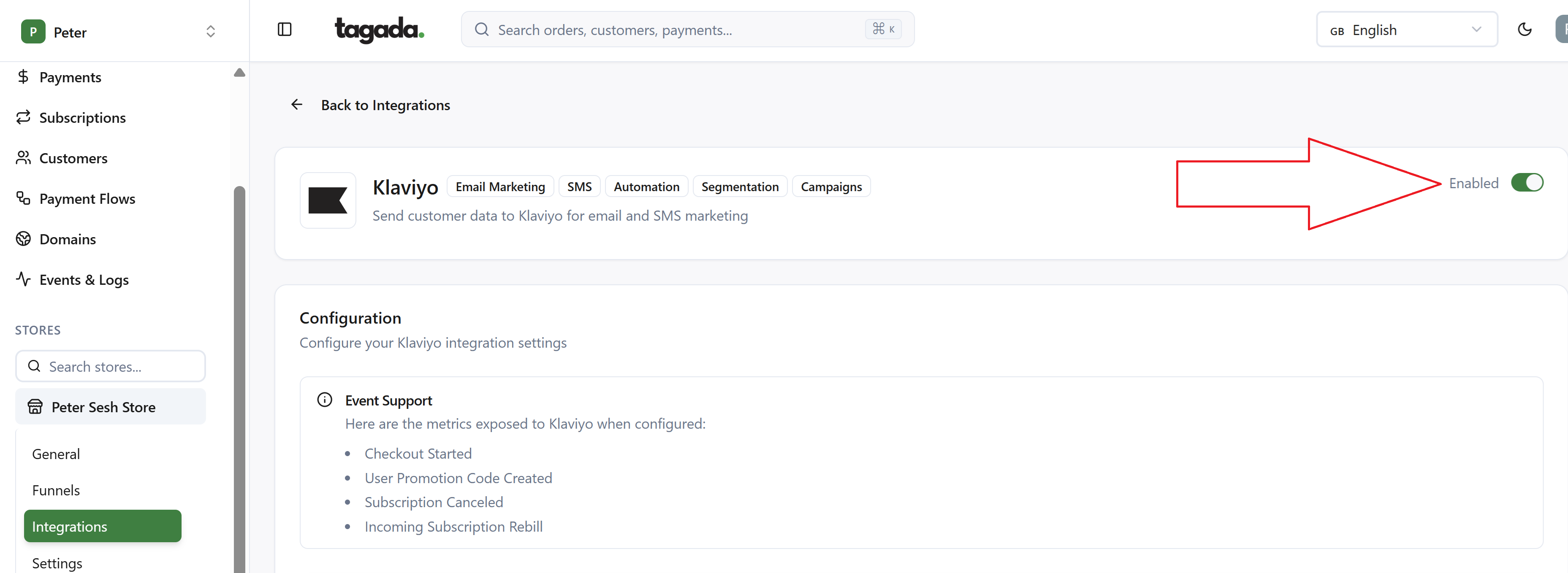 These are the steps that you have to take to connect Klaviyo to Tagada.