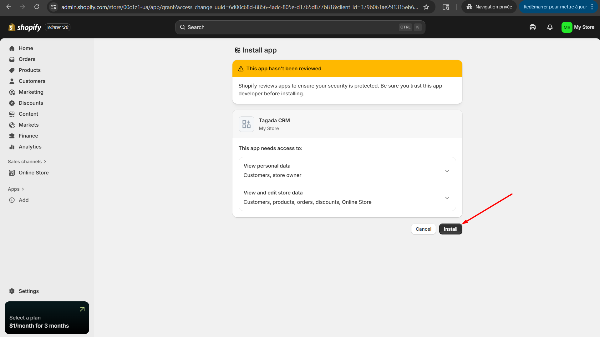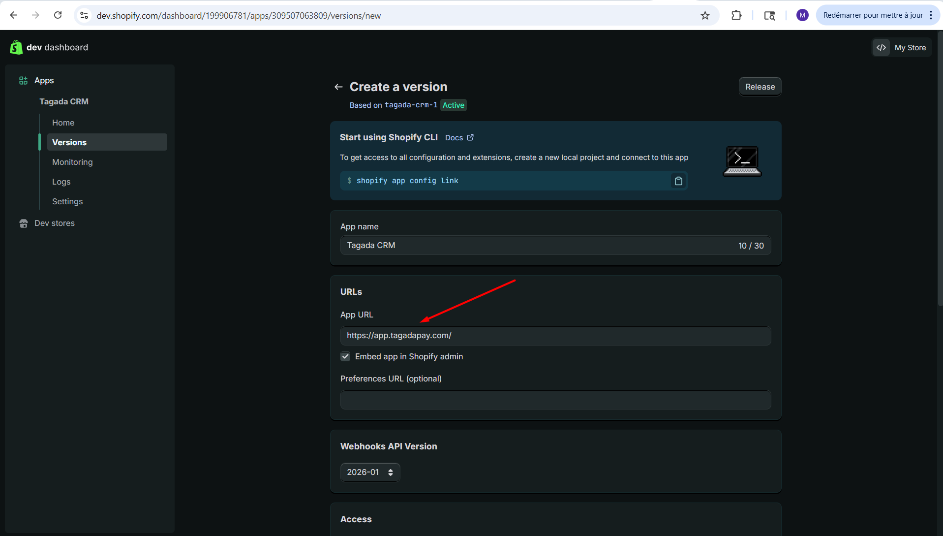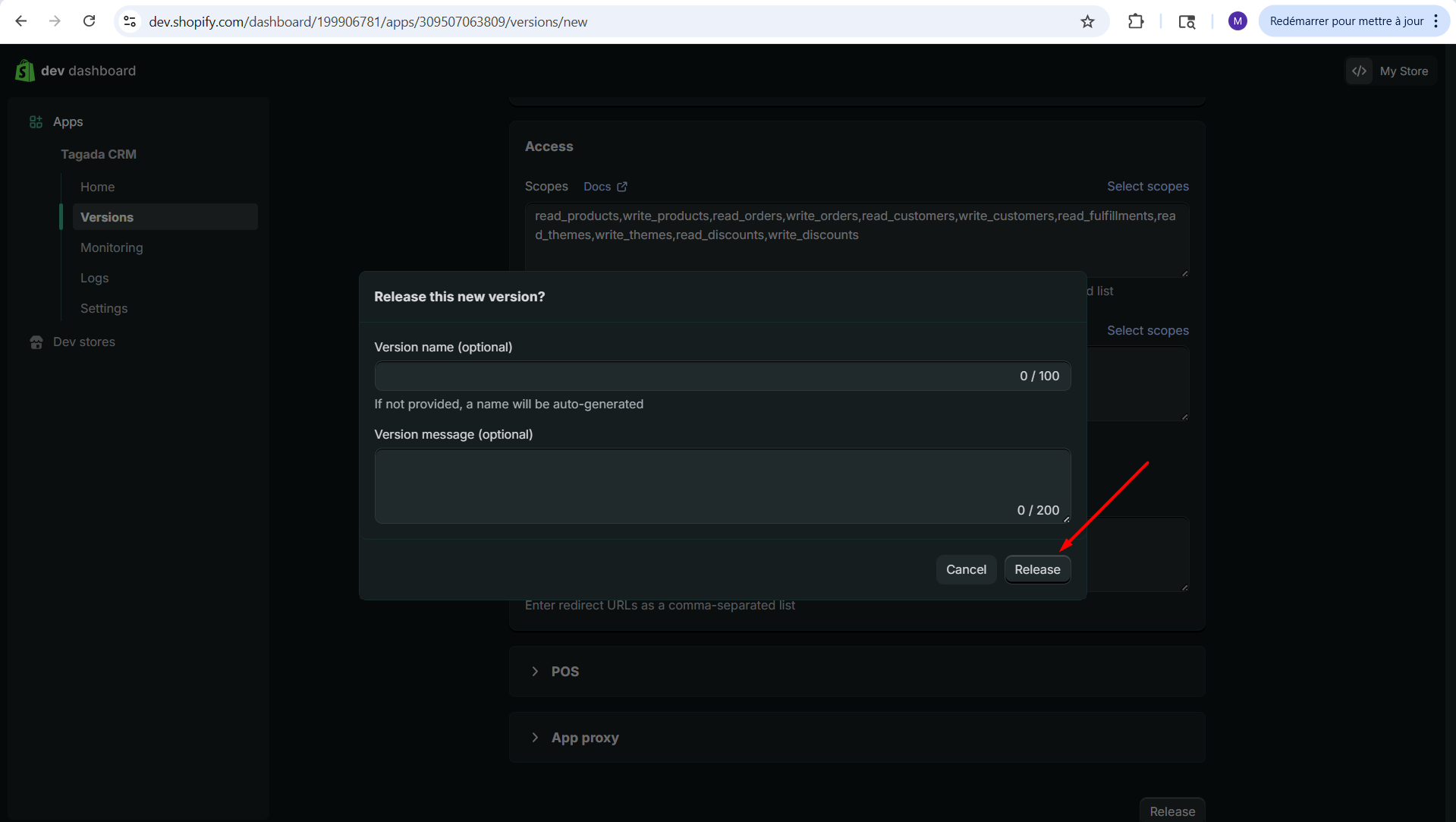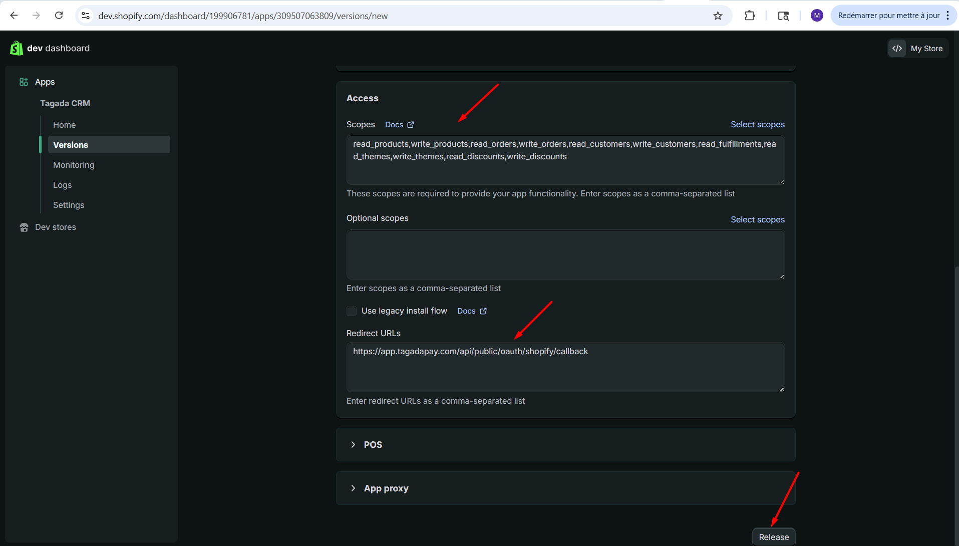 Redirect URLs: https://api.tagada.io/api/public/oauth/shopify/callback