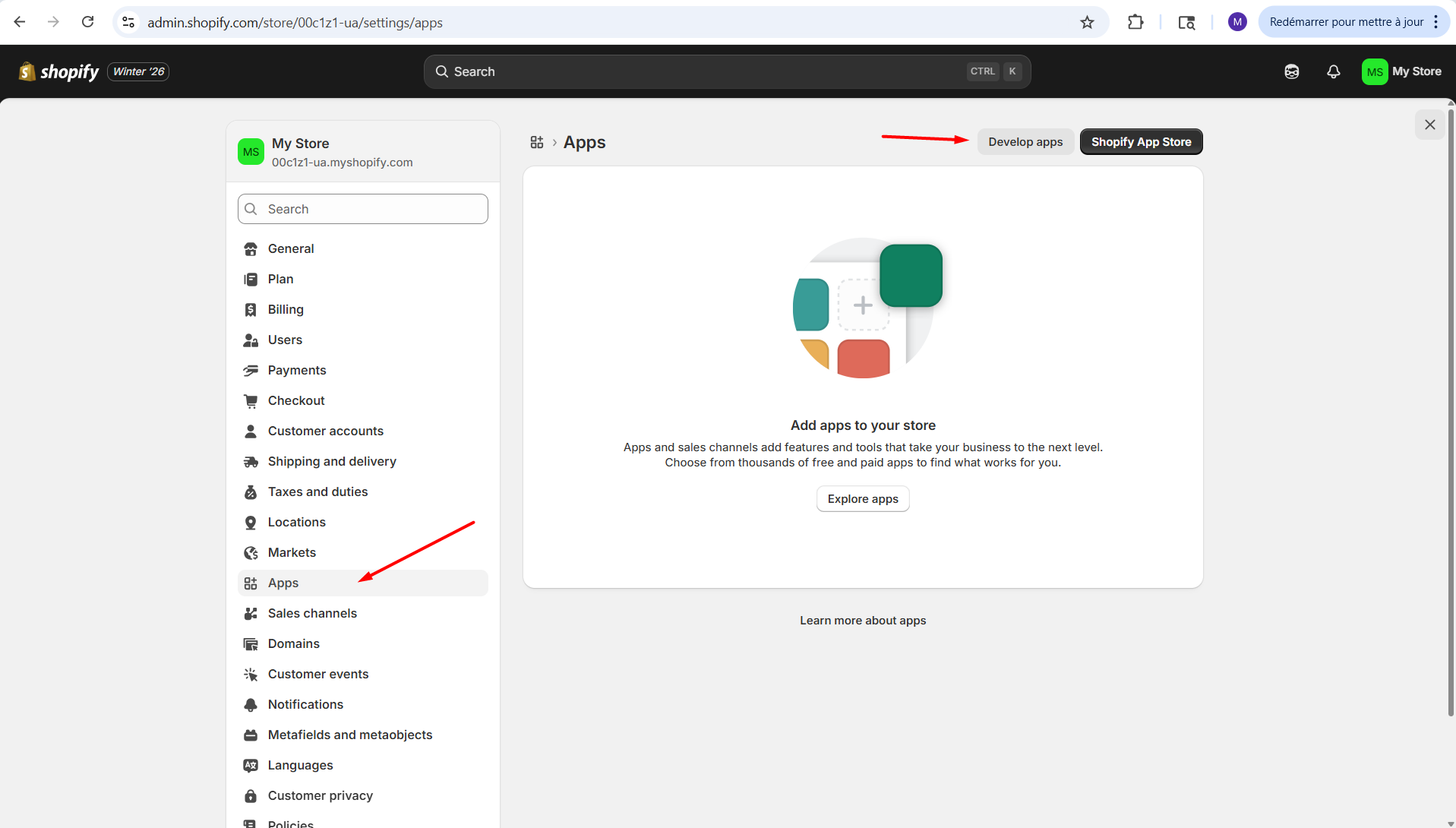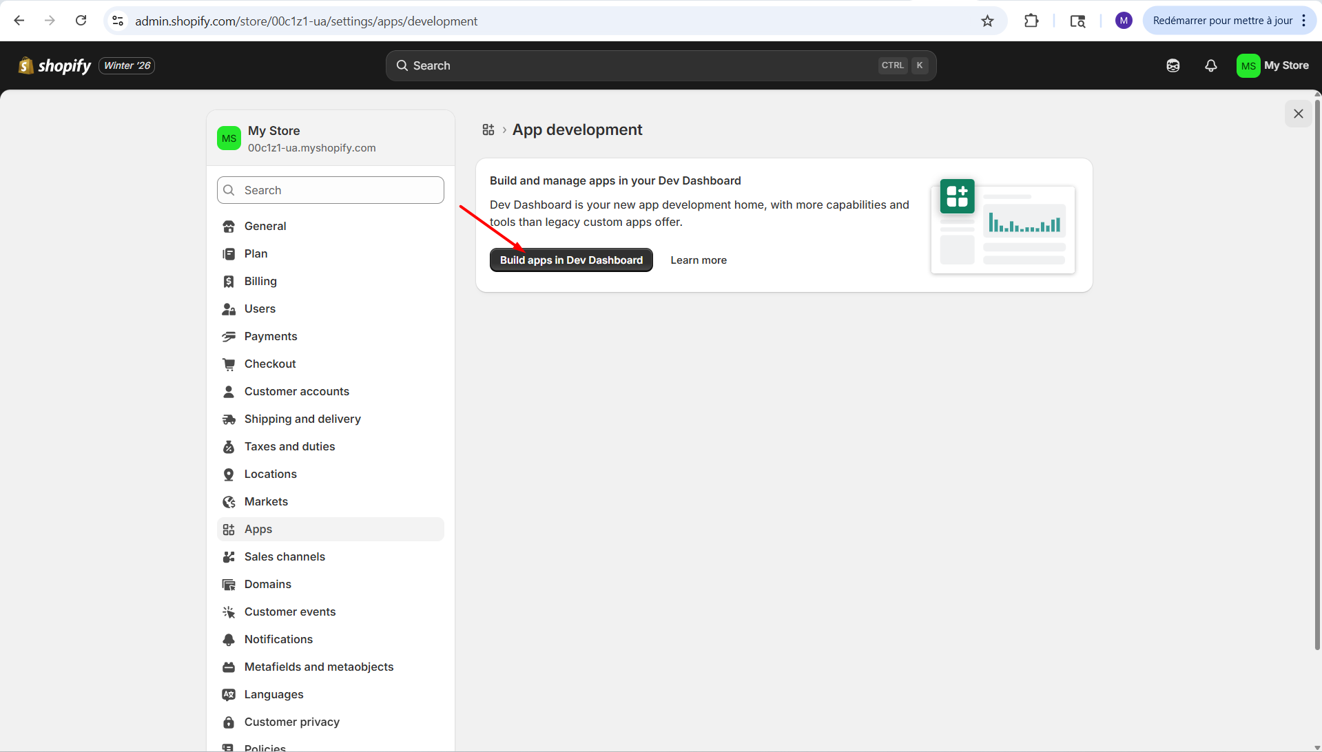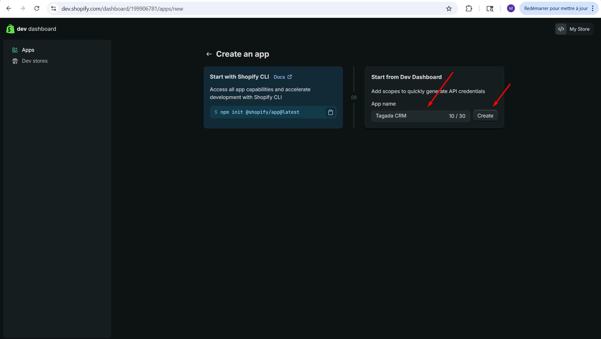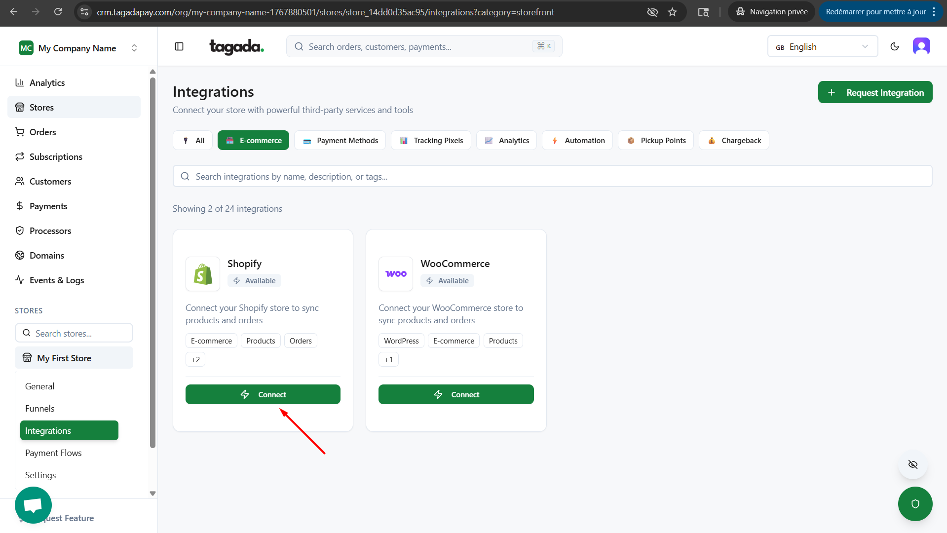 Paste it on Tagada. Enter your Shopify Store URL by strictly respecting the format mystore.myshopify.com. Click on Connect to Shopify.