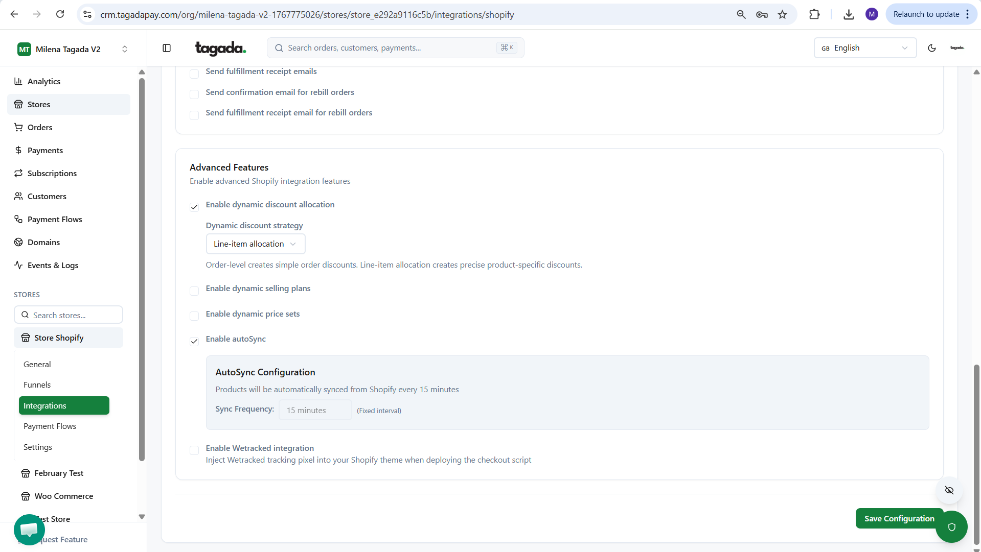 Do not forget to enable the settings needed for your store and click on Save Configuration.