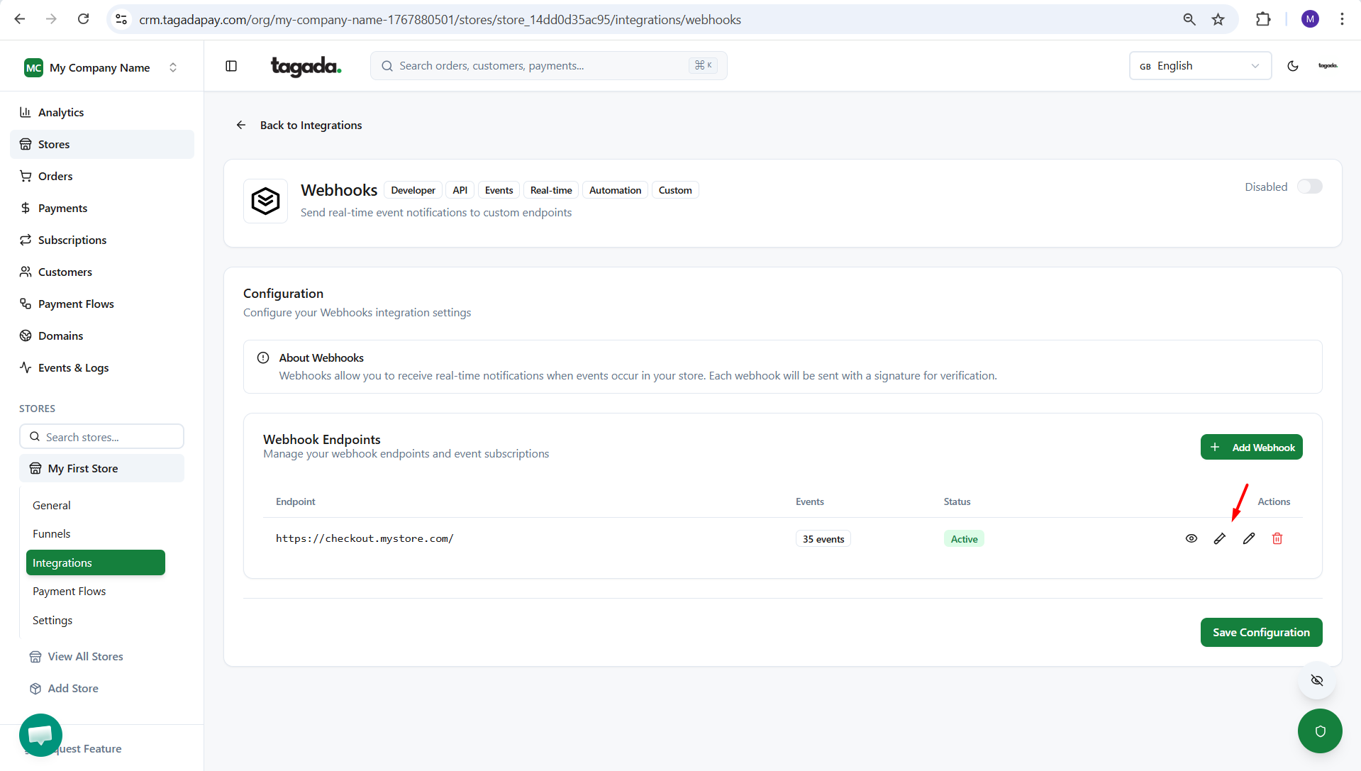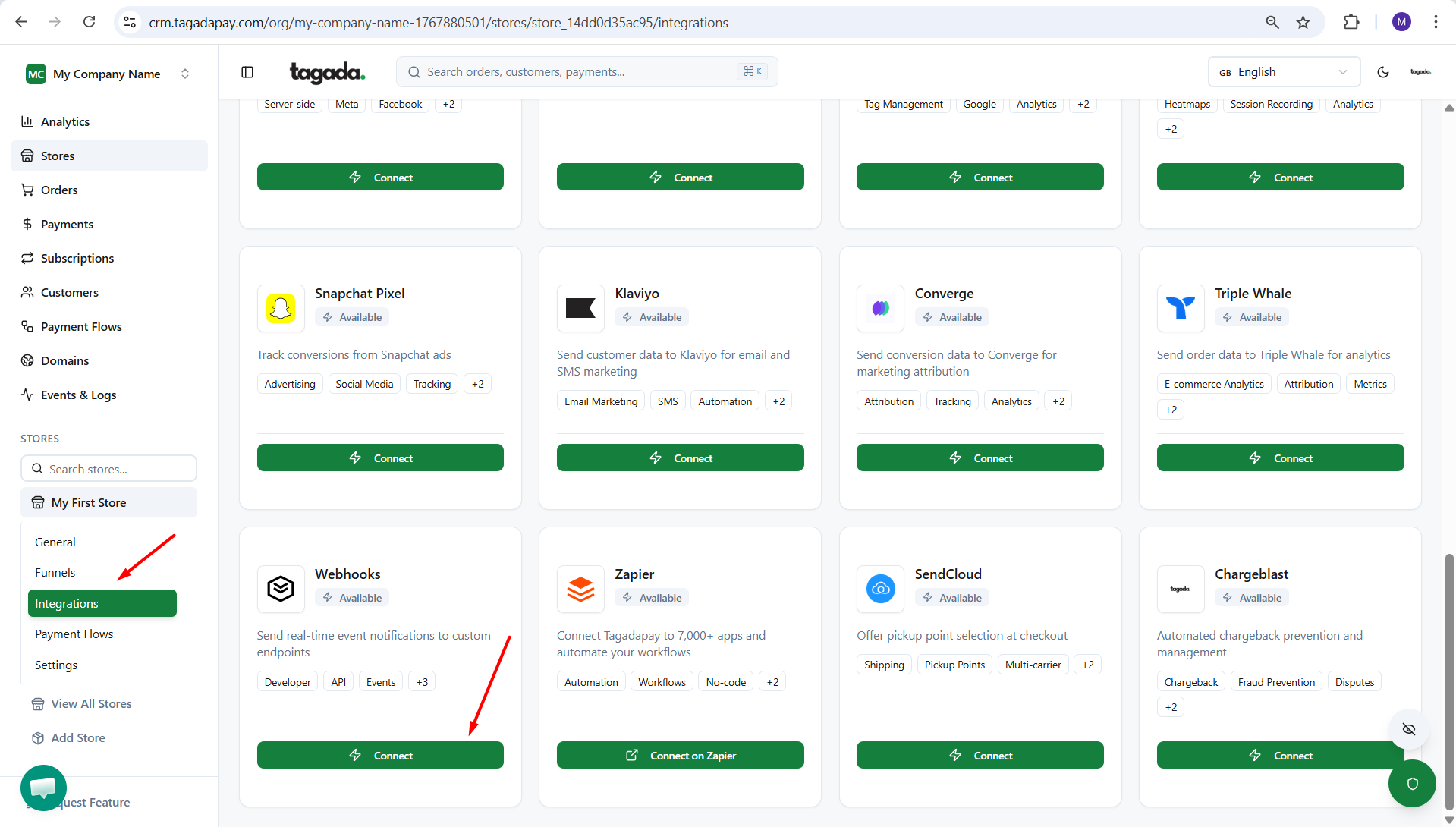 In your Tagada account click on Stores on the left side menu and then click on the Add Store button.