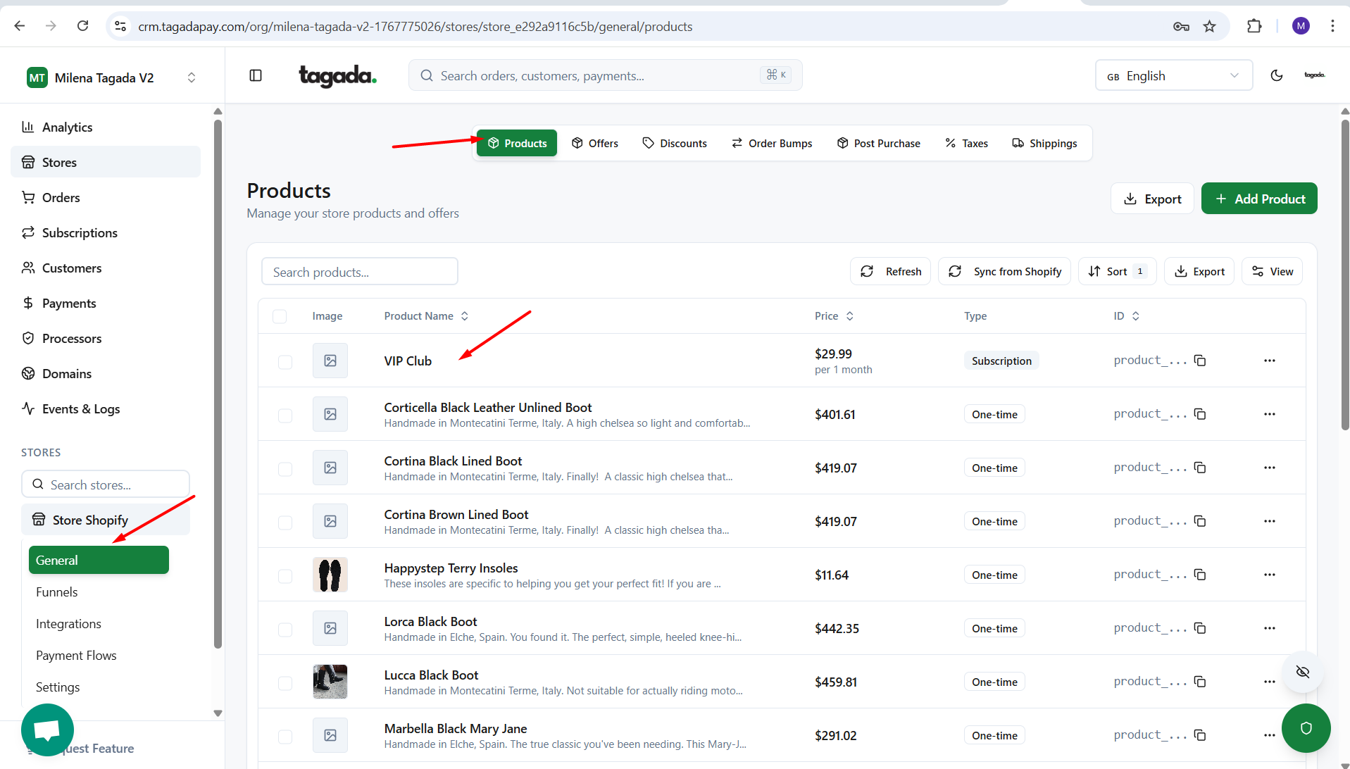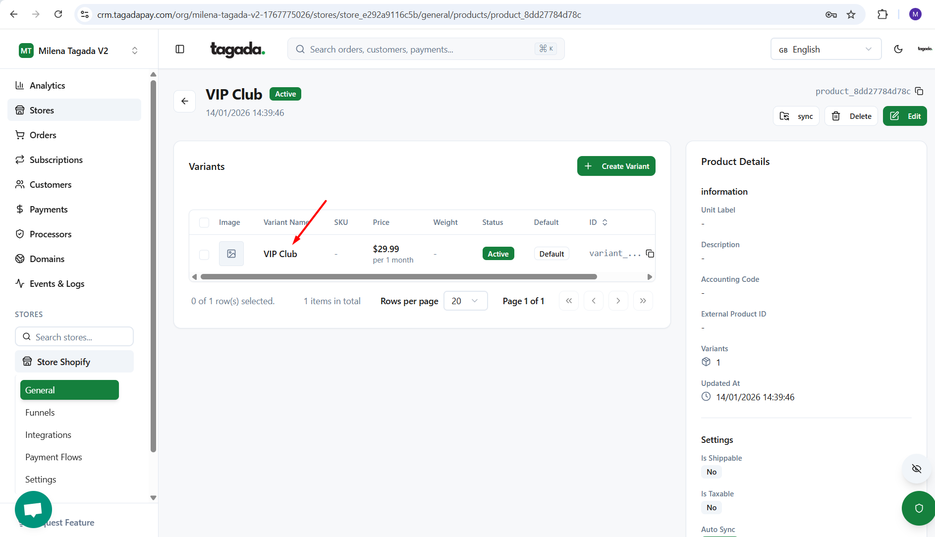 To do this, click on the General tab in the menu of your Store, then click on the Products tab and click on your recurring product.