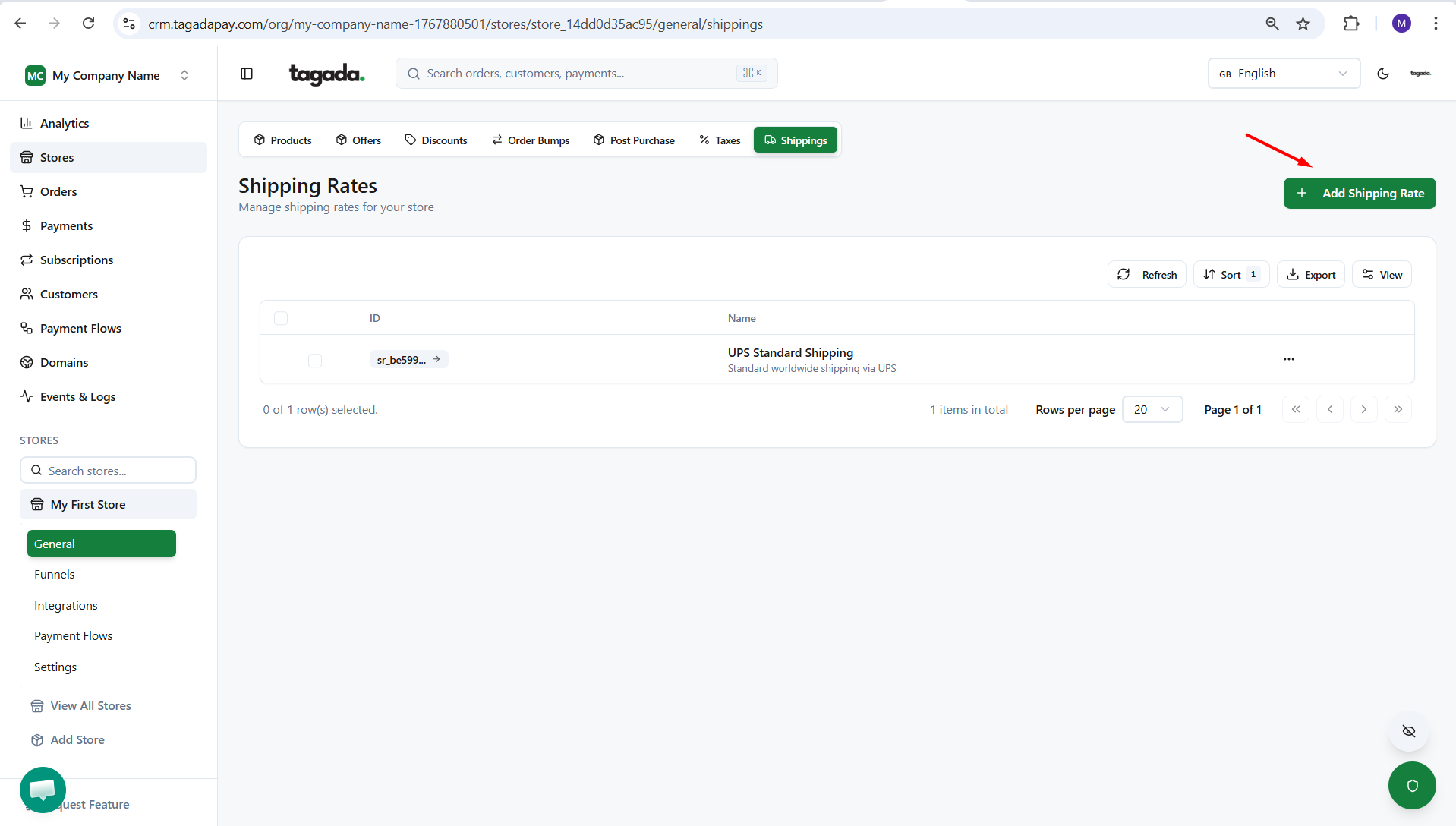 Click on Add Shipping Rate