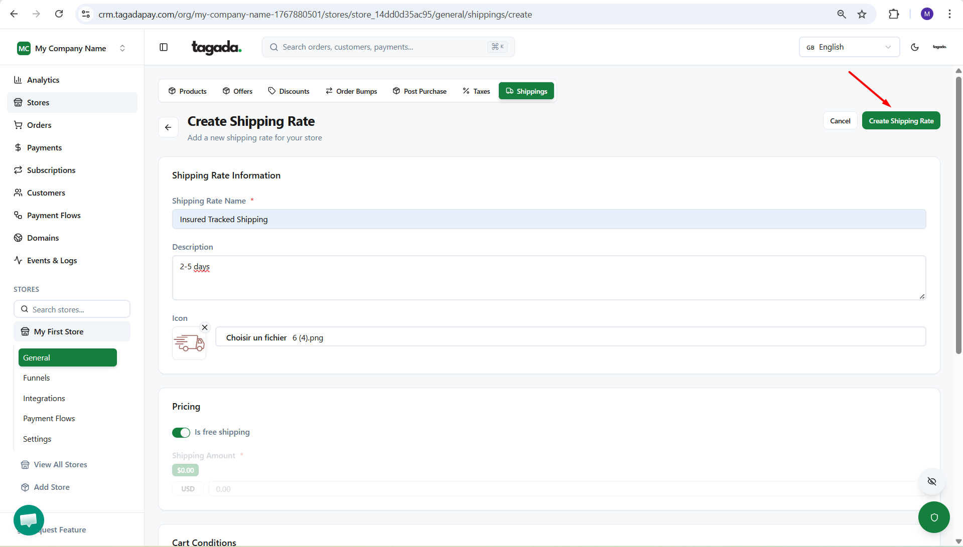 Once you have set up all the details, click on Create Shipping Rate.