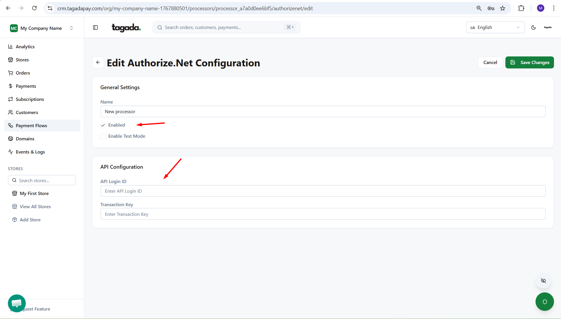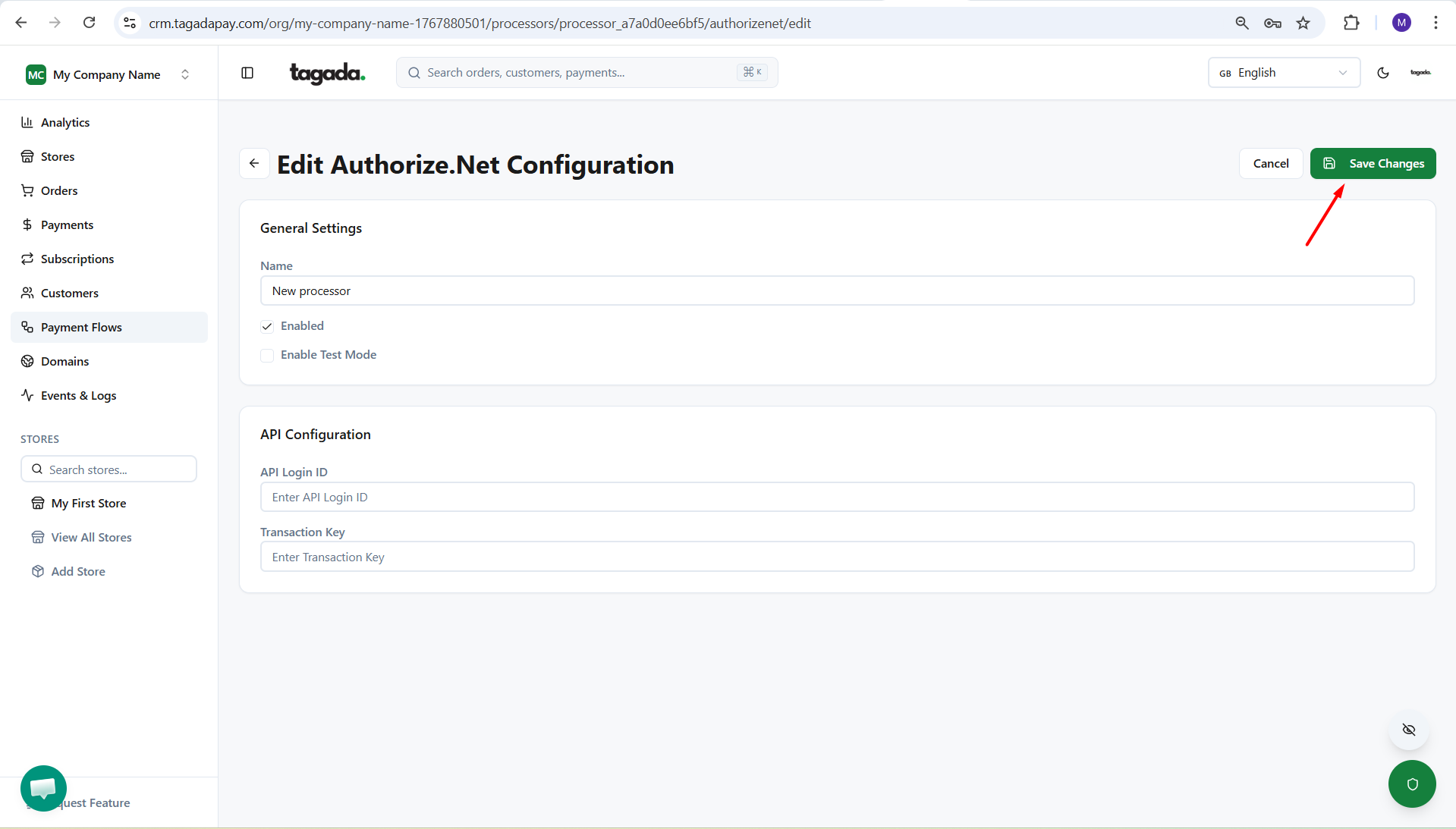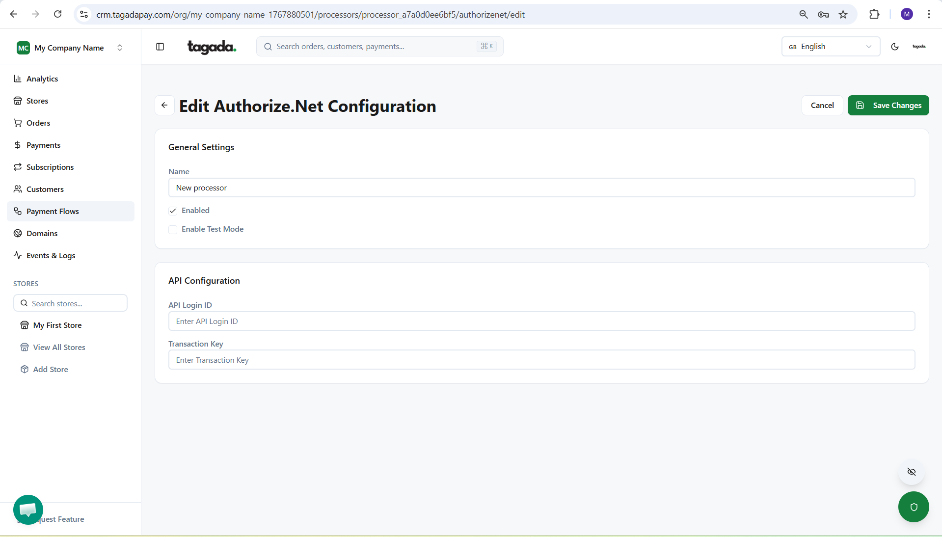 While you're in your Organization, select Payment Flows from the left-hand menu, then select the Processors tab and click on Add Processor.