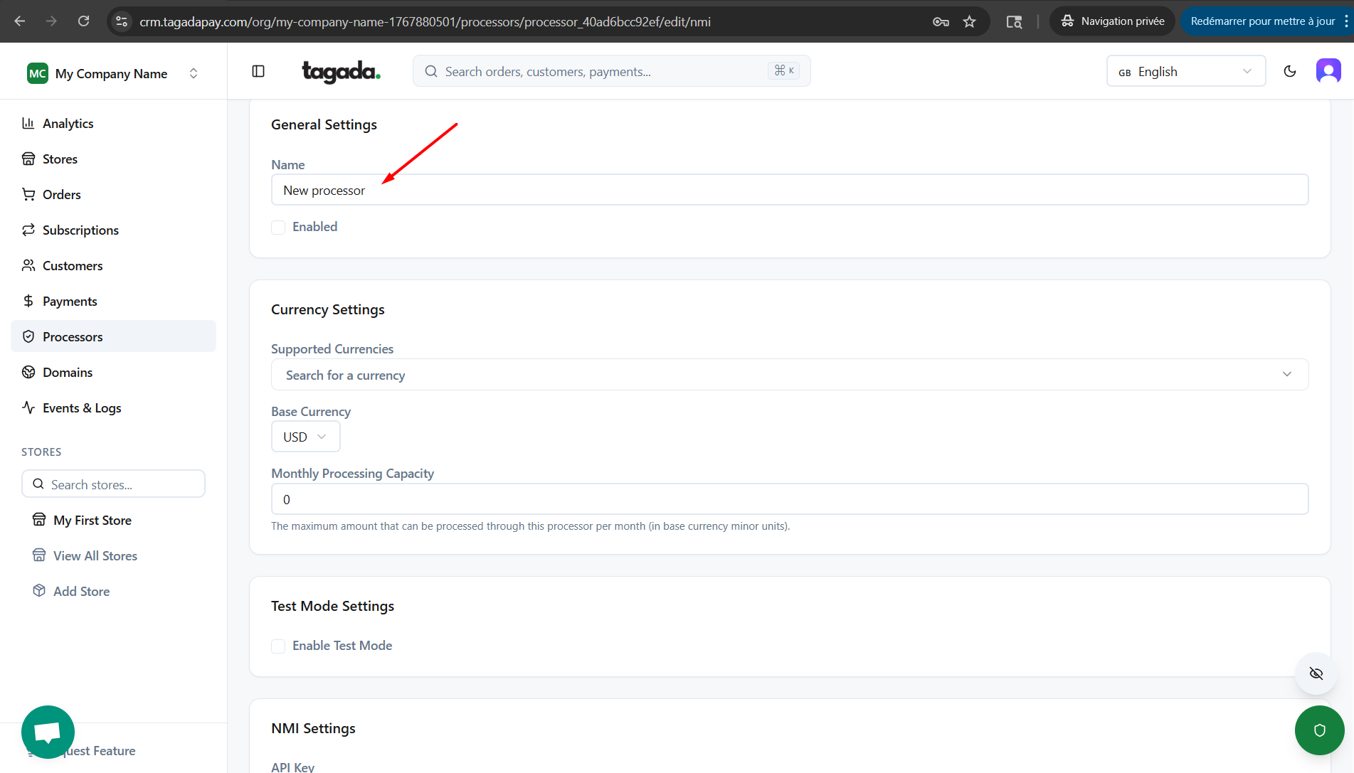 Enter the name of the processor so you can easily identify it in your list of added processors.