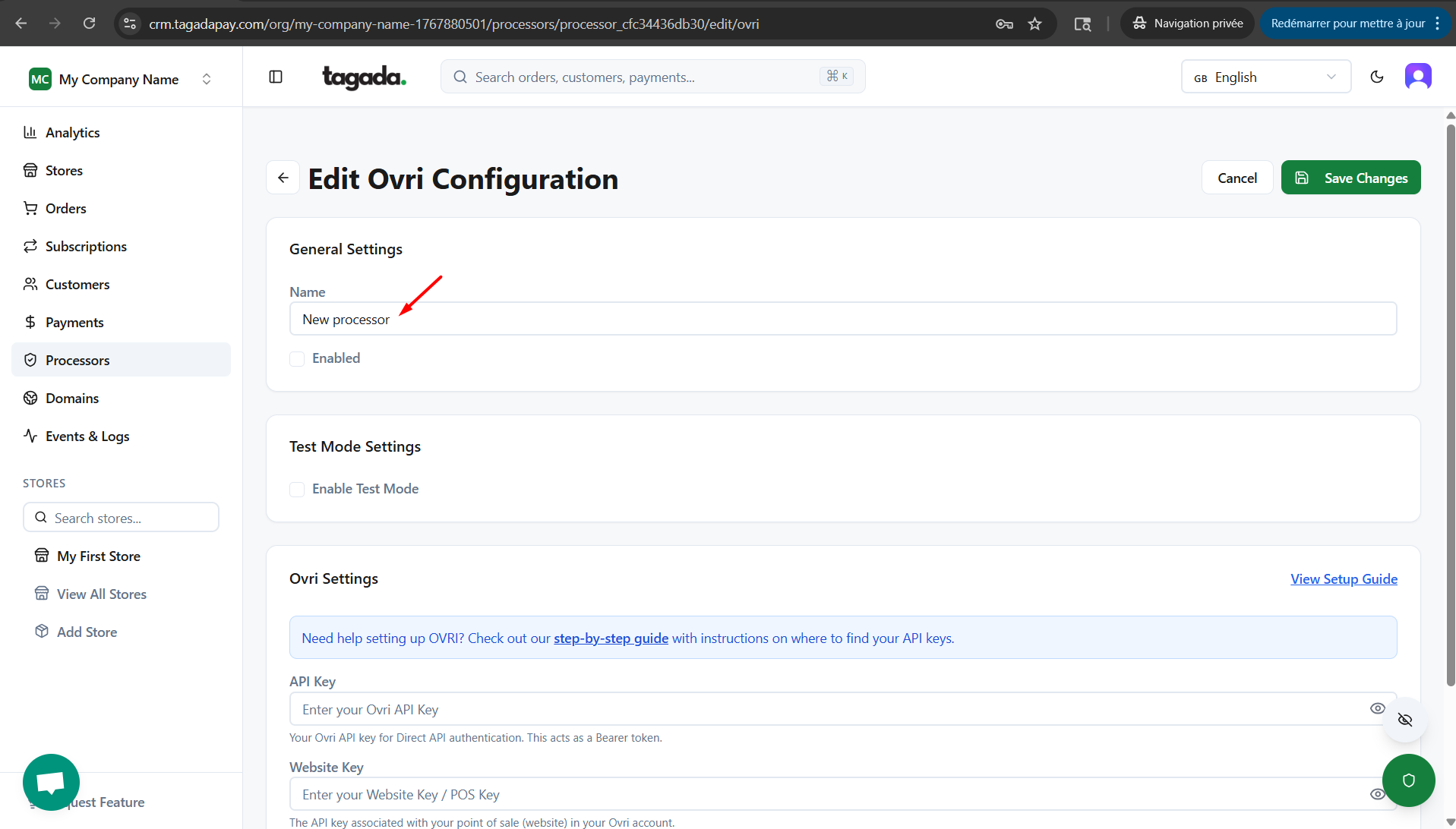 Enter the name of the processor so you can easily identify it in your list of added processors.