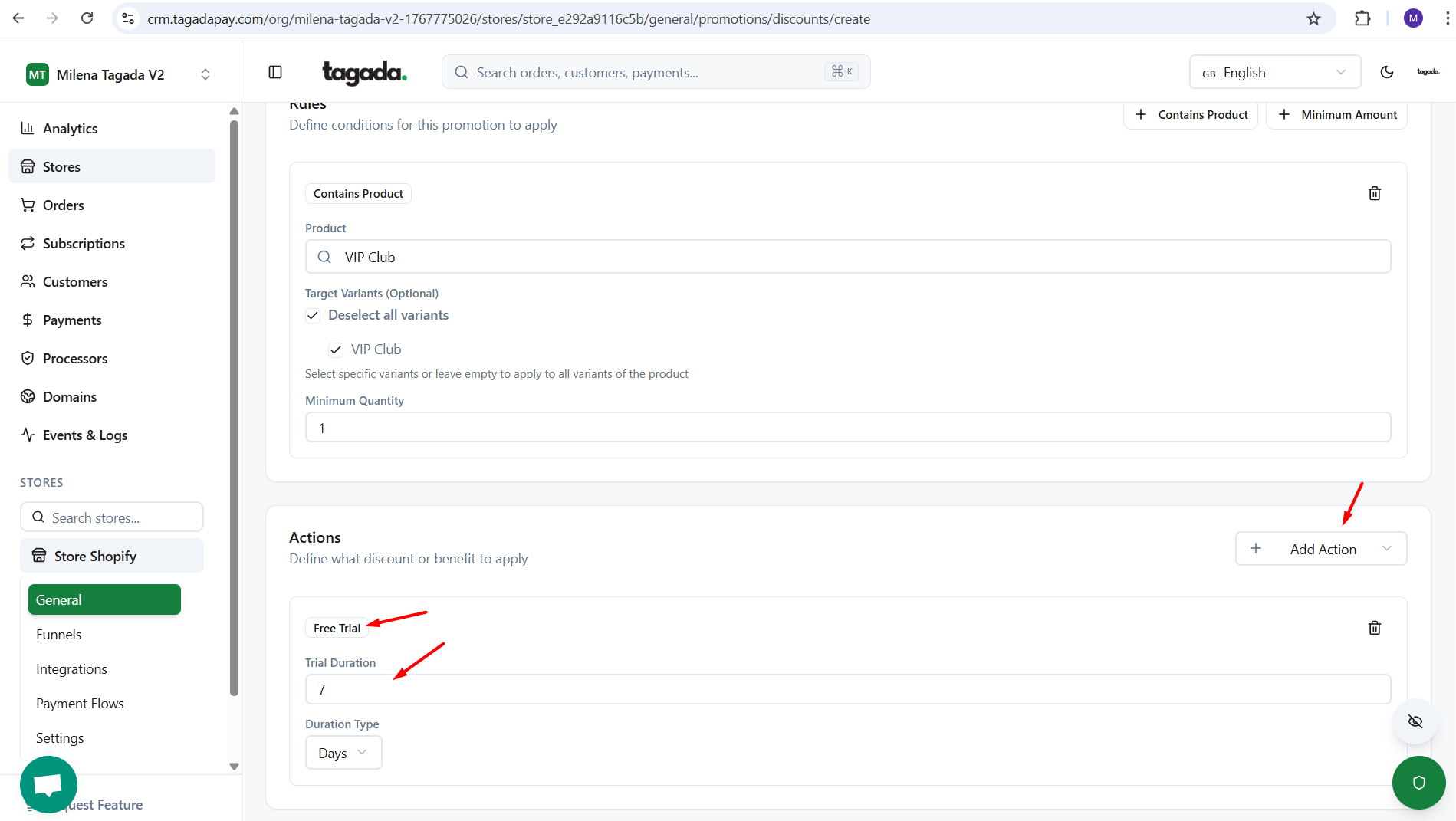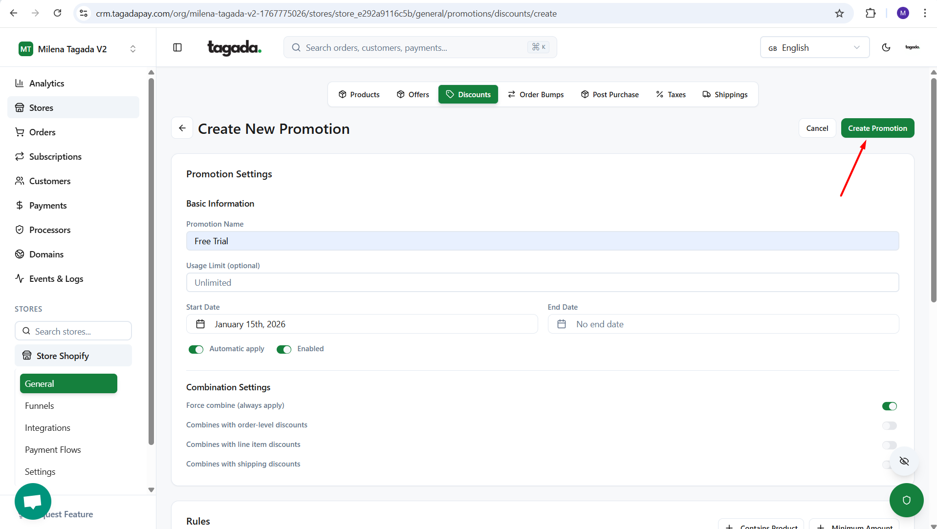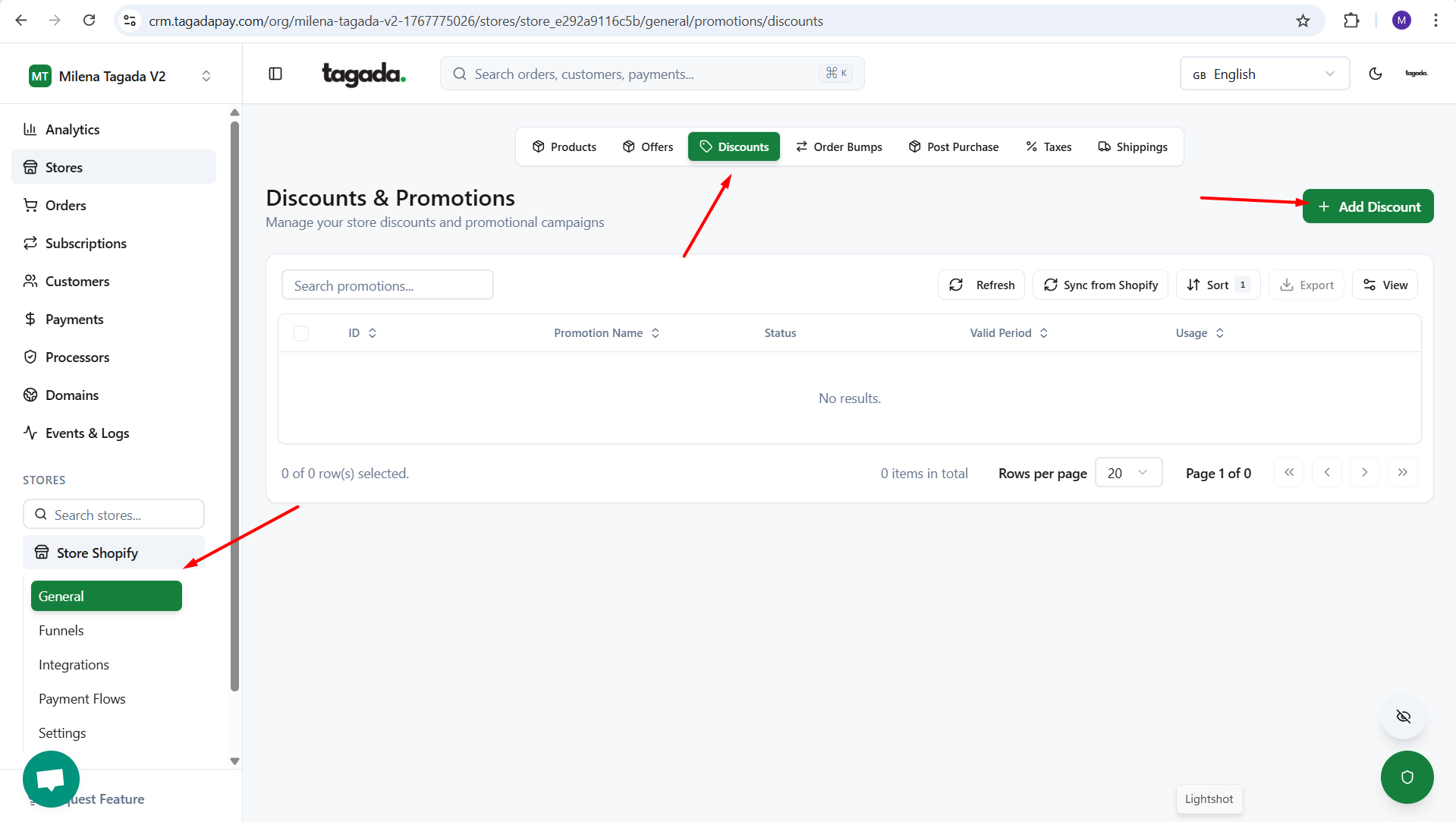 Under your store menu, click on General, then click on Discounts and on Add Discount.