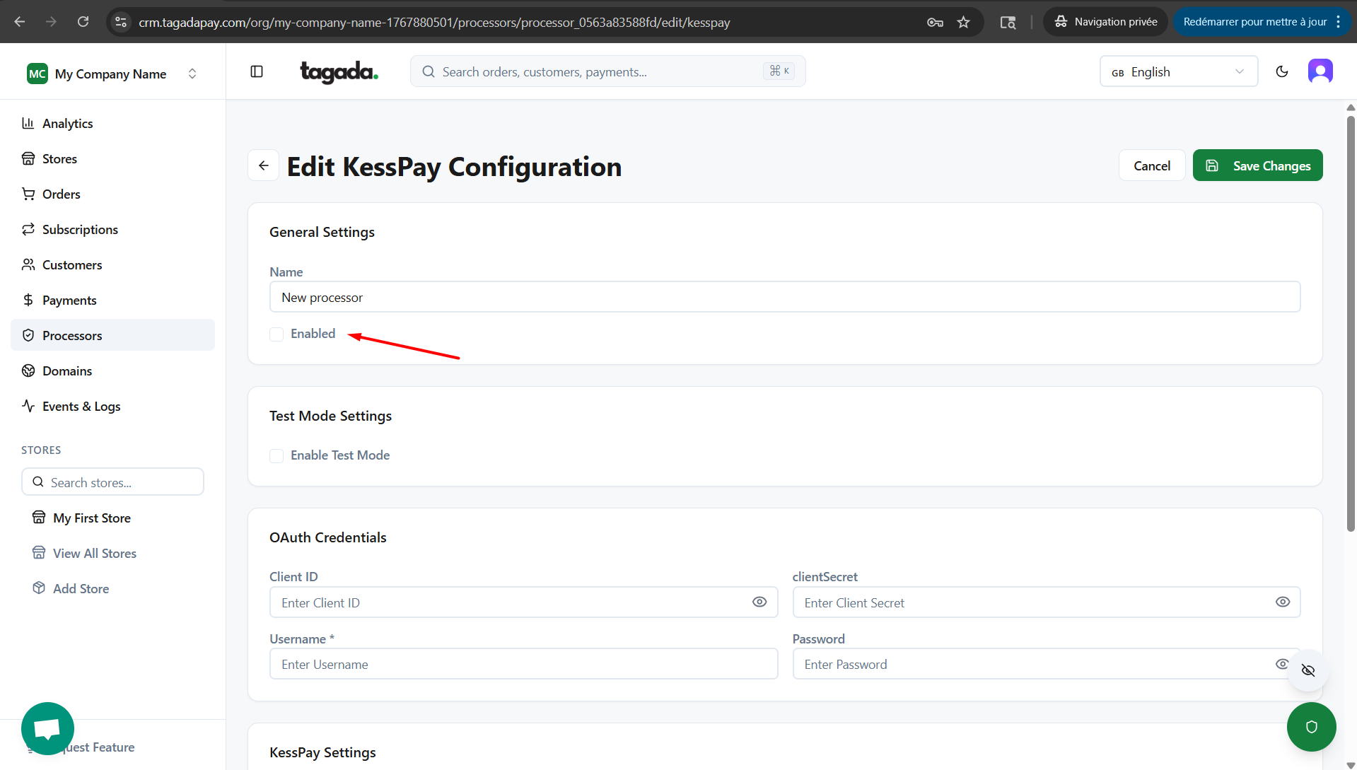 Saisissez toutes les informations requises et assurez-vous de cocher l'option Activer (Enable).