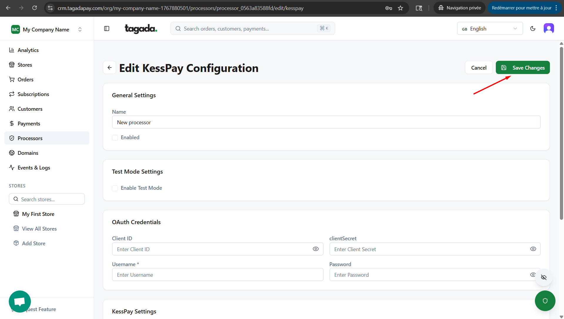 Cliquez sur Enregistrer les Modifications (Save Changes).